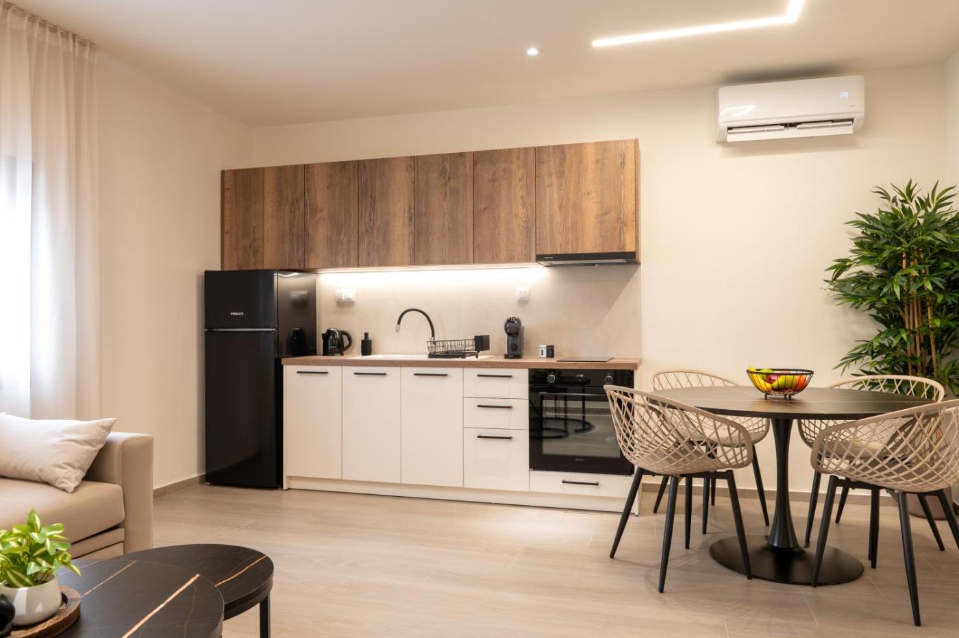 One-Bedroom Apartment. Featuring a private entrance, this air-conditioned apartment is comprised of 1 living room, 1 separate bedroom and 1 bathroom with a shower and a hairdryer. Guests will find a stovetop, a refrigerator, kitchenware and an oven in the well-fitted kitchen. The apartment also has a barbecue. The apartment features parquet floors, a seating area with a flat-screen TV, soundproof walls, a tea and coffee maker as well as ancourtyard view. The unit offers 3 beds.