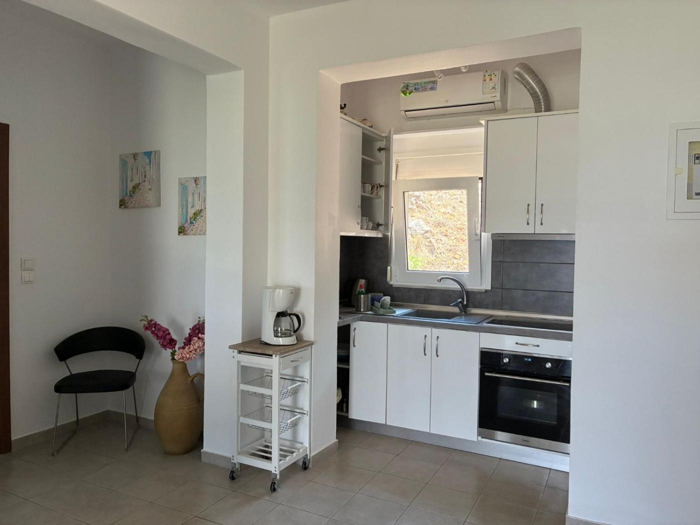 One-Bedroom Apartment. Boasting a private entrance, this air-conditioned apartment comes with 1 living room, 1 separate bedroom and 1 bathroom with a shower and a hairdryer. Guests can make meals in the kitchen that features a stovetop, a refrigerator, kitchenware and an oven. Featuring a terrace with sea views, this apartment also features a wardrobe and a flat-screen TV with satellite channels. The unit has 2 beds. ;